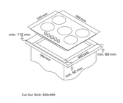 Heeft u nu een 4 pits kookplaat, dan kunt u deze moeiteloos vervangen voor deze 5 pits kookplaat door zijn minimale inbouwmaten.