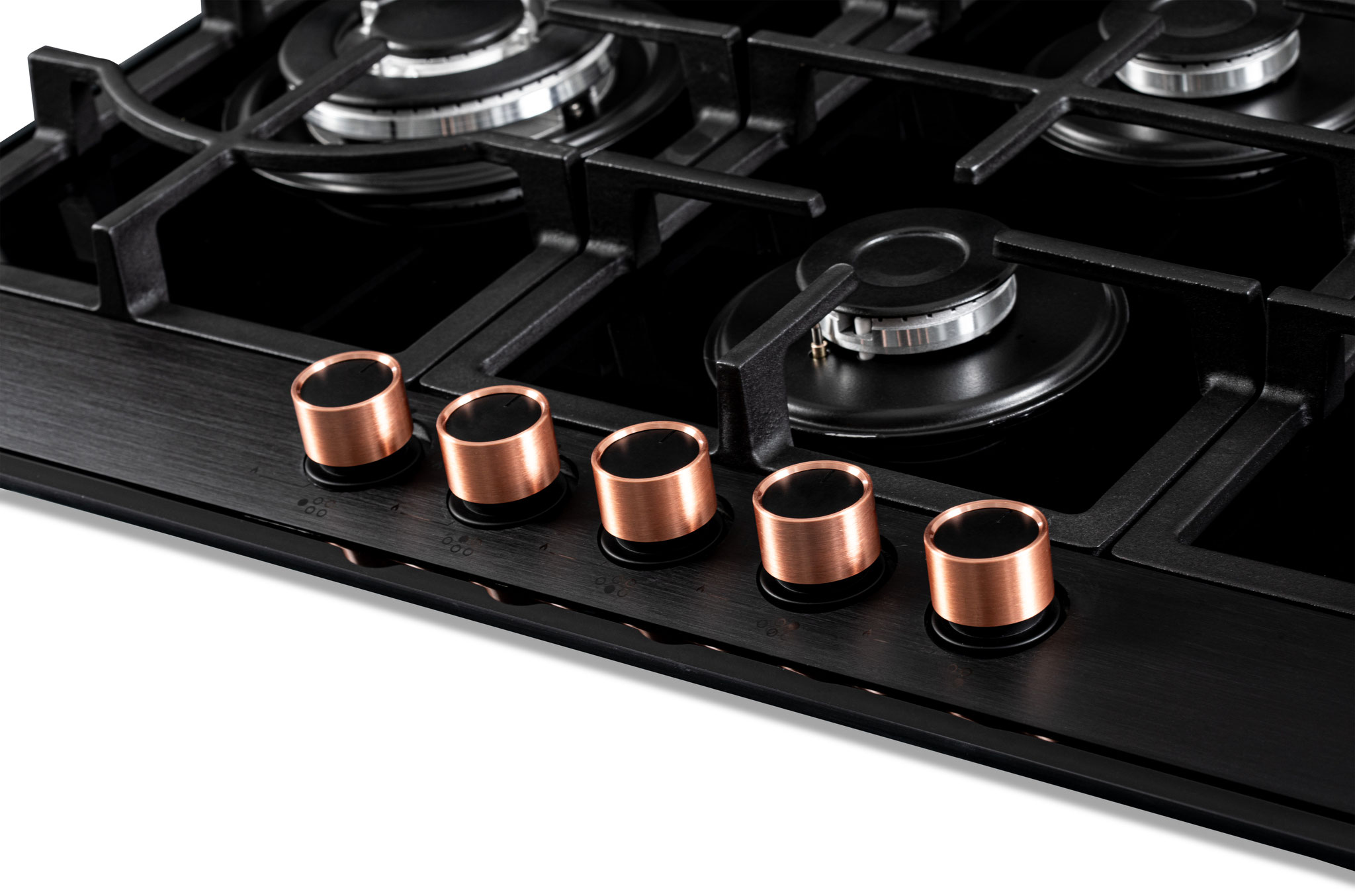 Dankzij de éénknops vonkontsteking wordt koken comfortabeler dan ooit: met één hand draai je de knop om en activeer je direct de vlam. Het geborstelde zwarte bedieningspaneel met zilverkleurige knoppen geeft de kookplaat een verfijnde, tijdloze uitstraling. Bovendien wordt er een extra set koperen knoppen meegeleverd, zodat je het design kunt personaliseren naar jouw smaak.