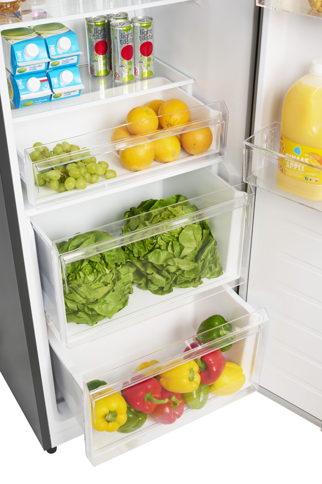 De NoFrost-technologie voorkomt ijsvorming, zodat je nooit meer hoeft te ontdooien en je etenswaren langer vers blijven. Via het display op de deur lees en regel je eenvoudig de temperatuur en instellingen, zonder de deur te openen.