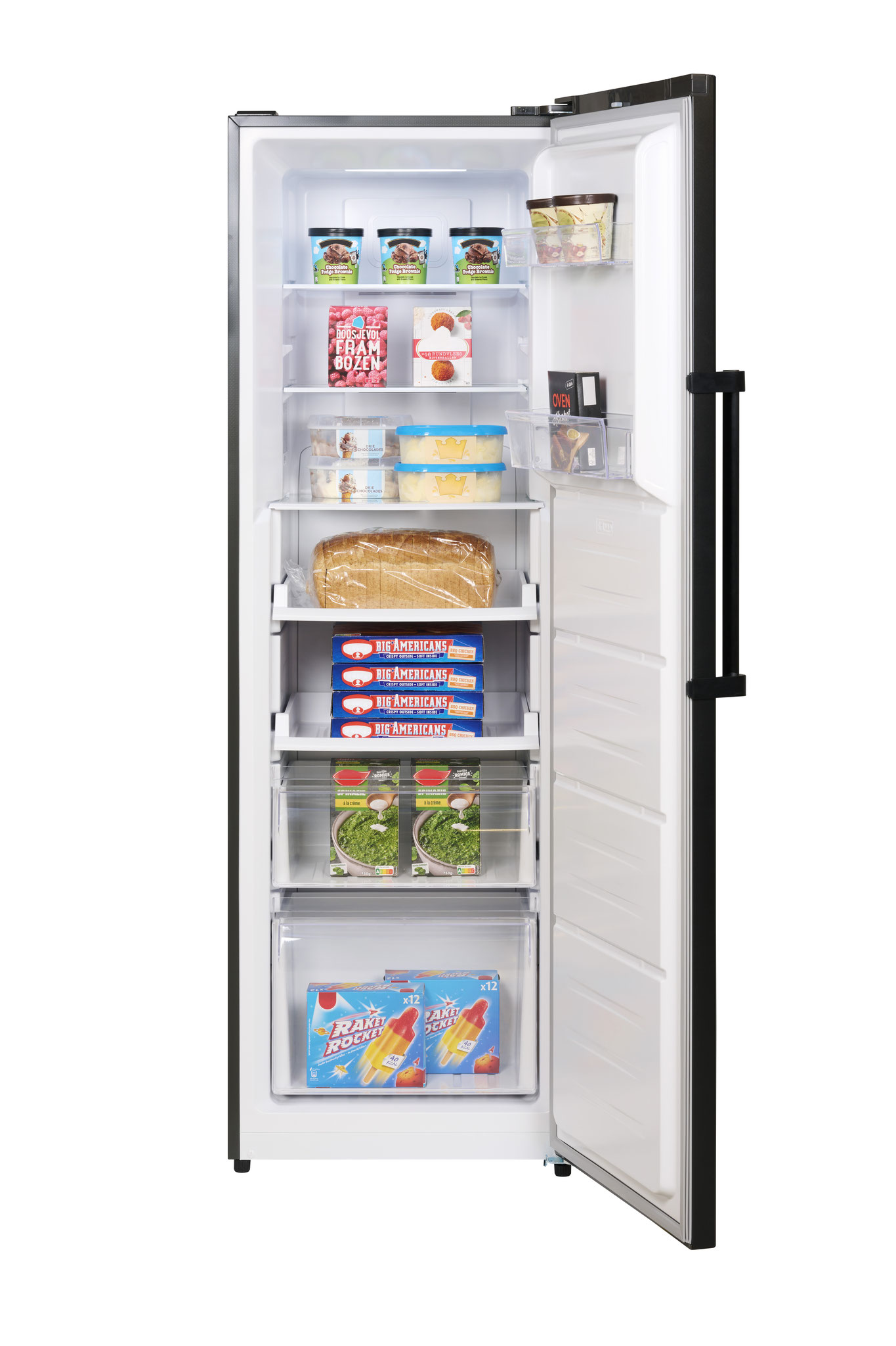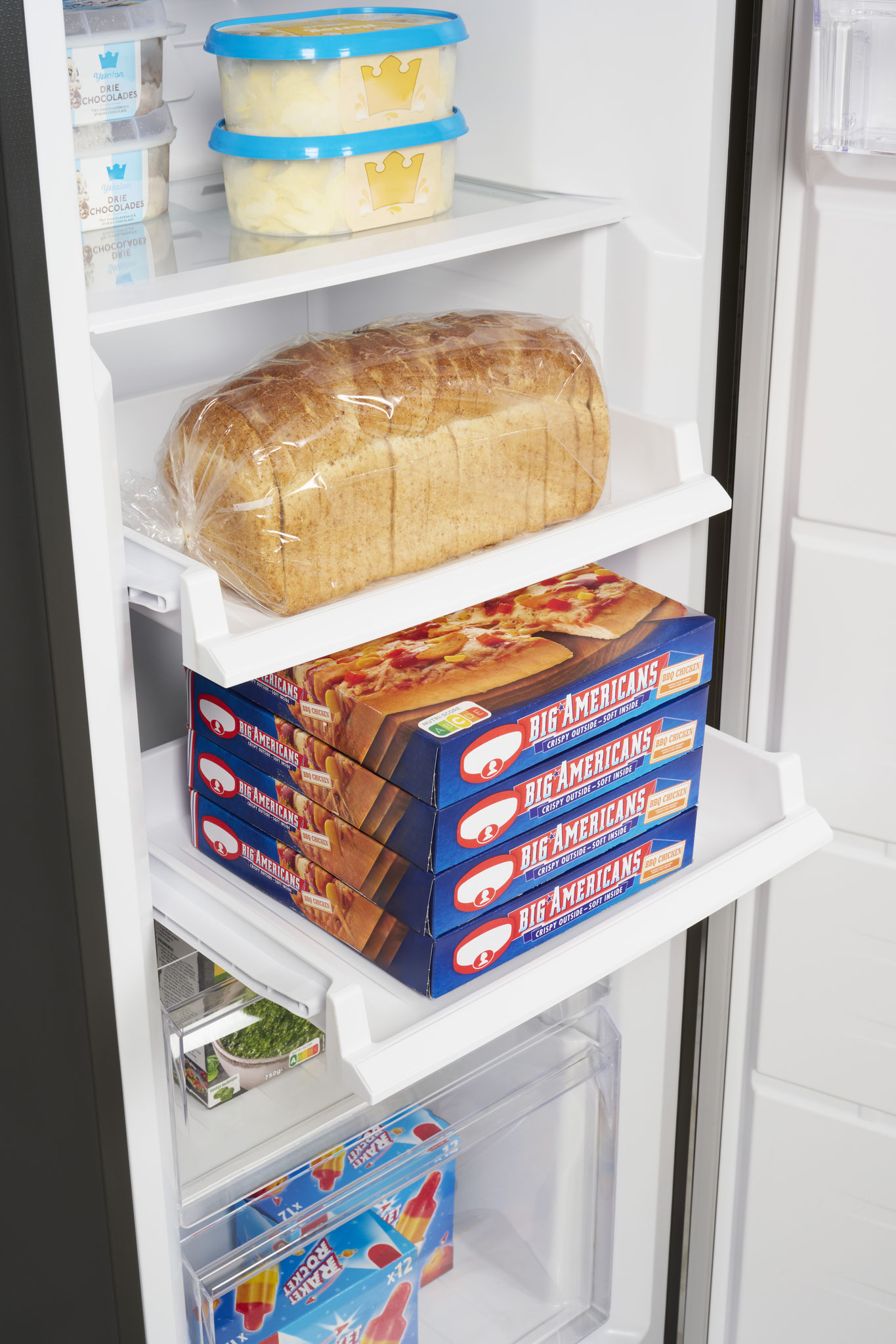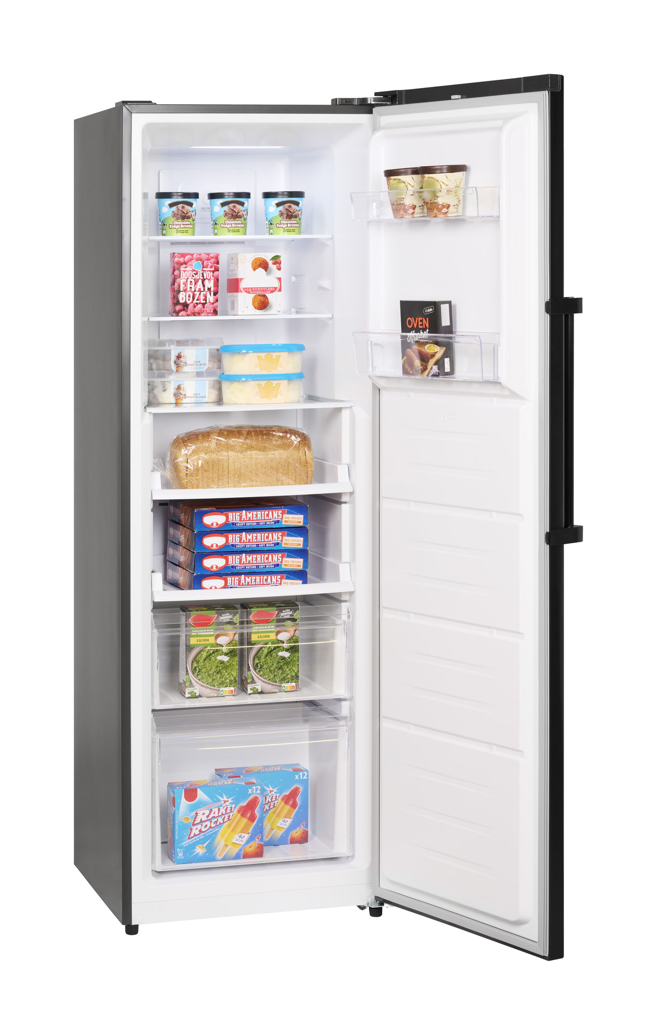 Binnenin is de vrieskast overzichtelijk ingedeeld met 4 transparante lades en 3 schappen, zodat je al je producten netjes kunt organiseren. De heldere LED-verlichting zorgt voor optimaal zicht, en via het display op de deur kun je eenvoudig de temperatuur aflezen en instellingen aanpassen zonder de deur te openen.
