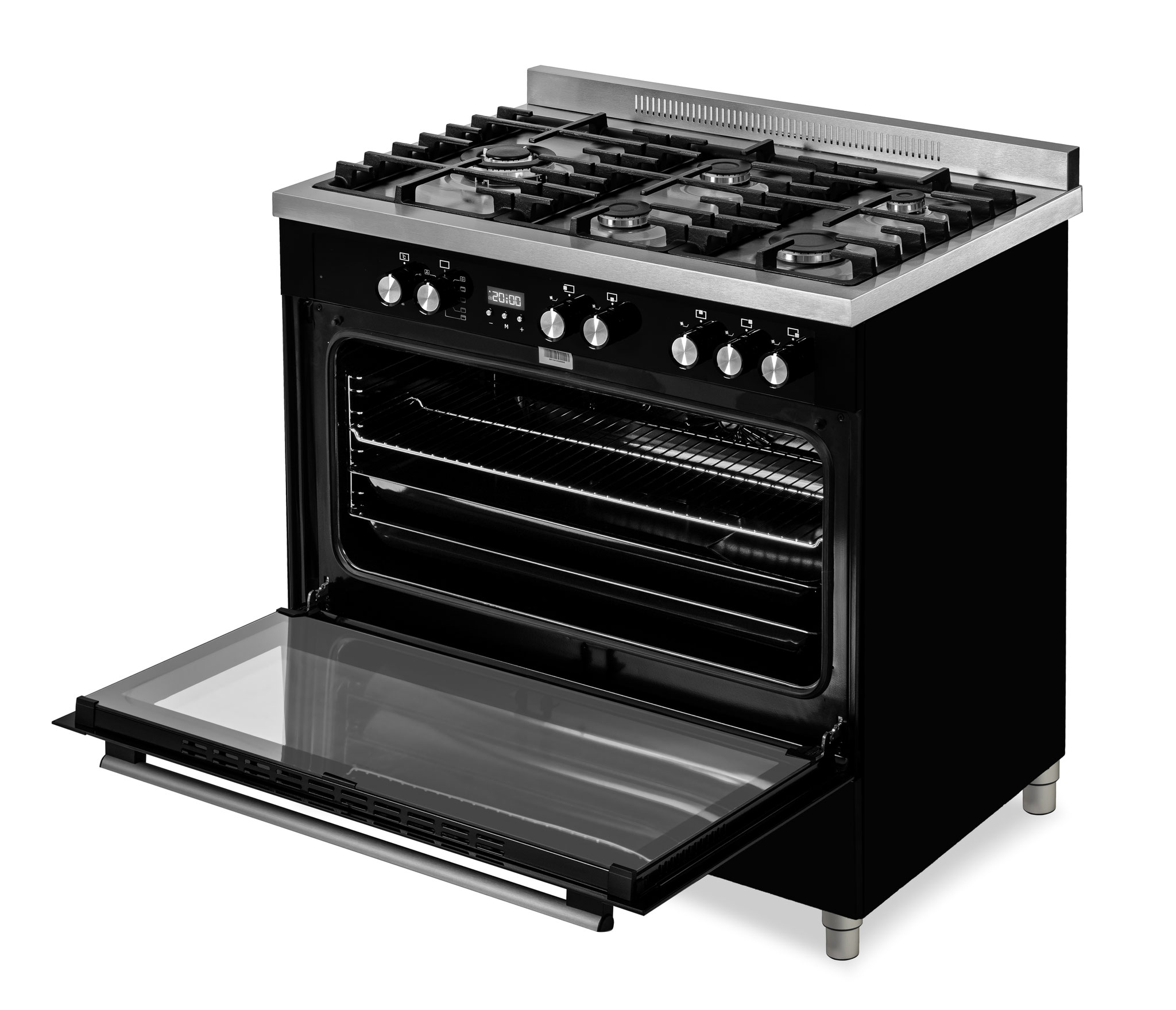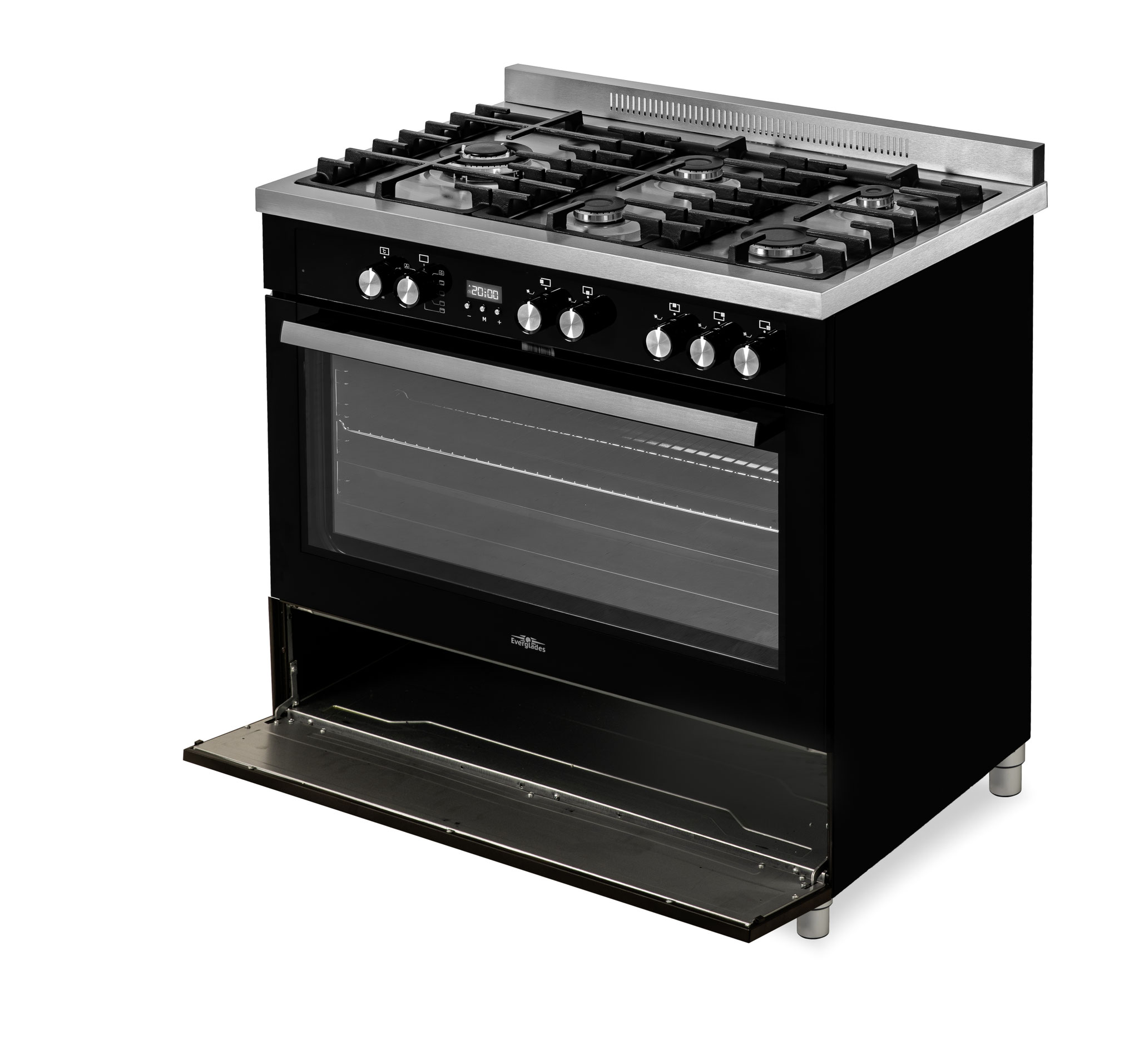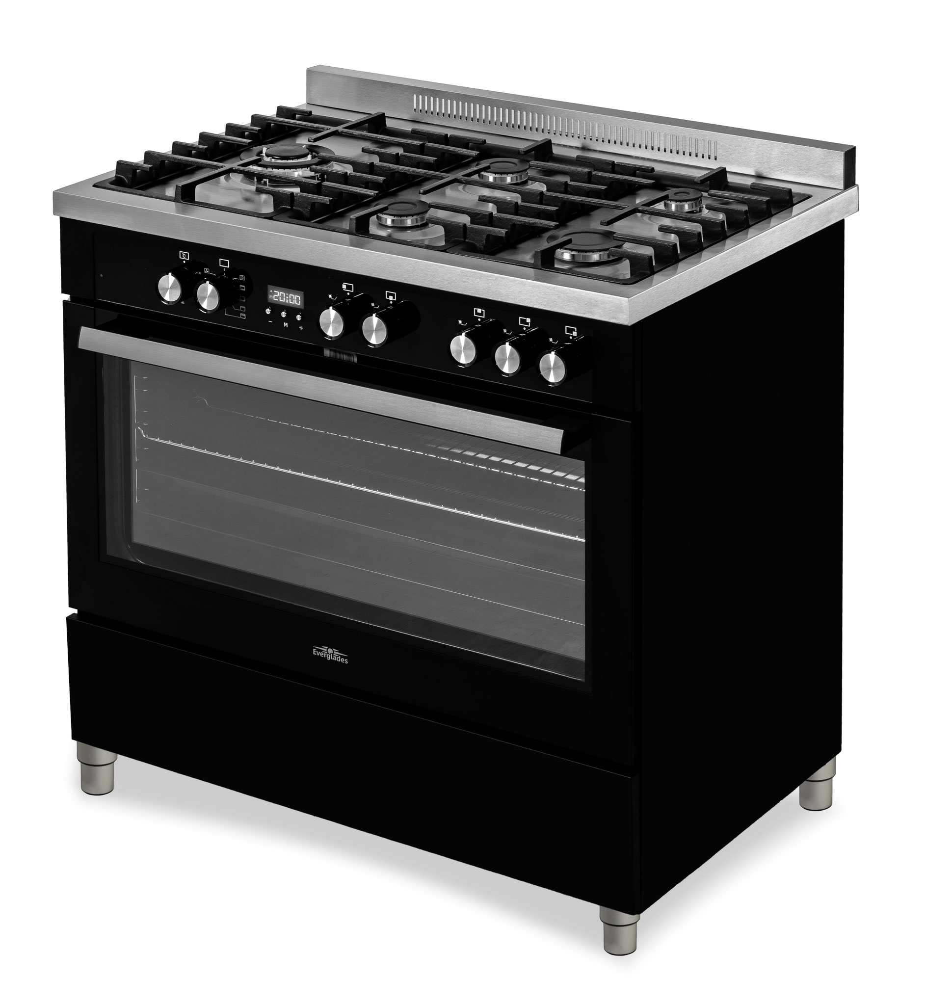 Stap binnen in de wereld van culinaire verfijning met het Everglades EVCK9050 gasfornuis. Dit gasfornuis, uitgevoerd in een mat zwarte afwerking met een RVS bovenblad, is niet alleen een lust voor het oog, maar met zijn Gietijzeren Pannendragers ook een stevige metgezel voor al jouw kookavonturen. Met zijn royale breedte van 90 cm en een indrukwekkende oveninhoud van 98 liter biedt dit fornuis alle ruimte en mogelijkheden die je nodig hebt om je culinaire creativiteit tot uiting te brengen.